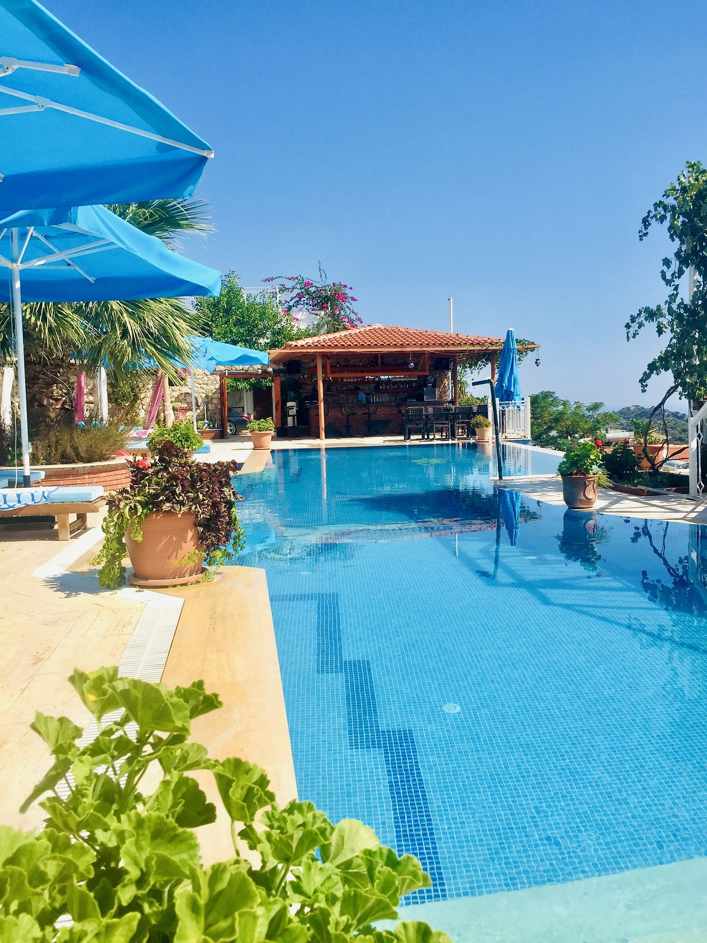 At the centre of the complex is a communal infinity swimming pool with a stunning view over Kalkan bay. To the far side of the pool is the Agora Restaurant and opposite, the Agora bar.