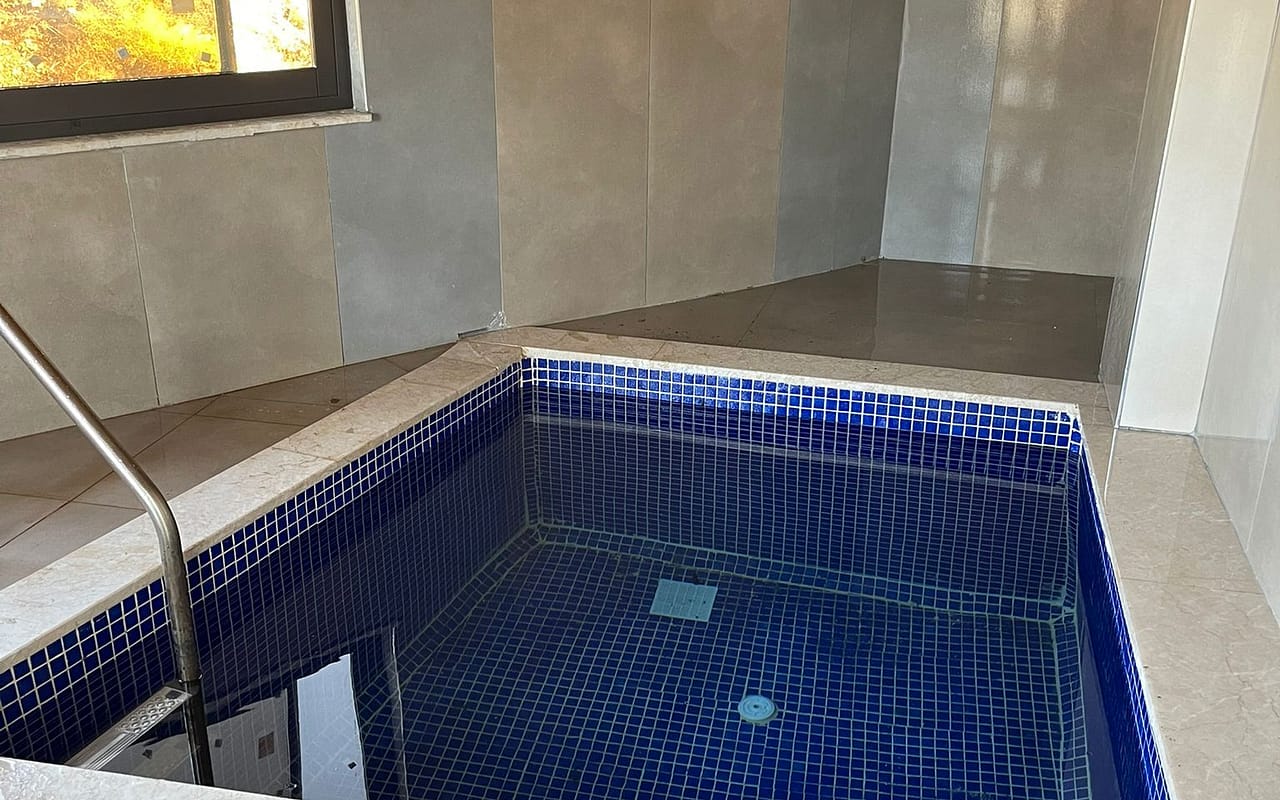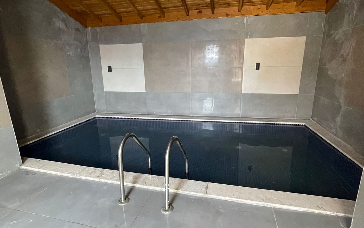 Outside there is a private sun terrace and a private pool, which is equipped with sun beds, a dining table and a BBQ for alfresco dining
